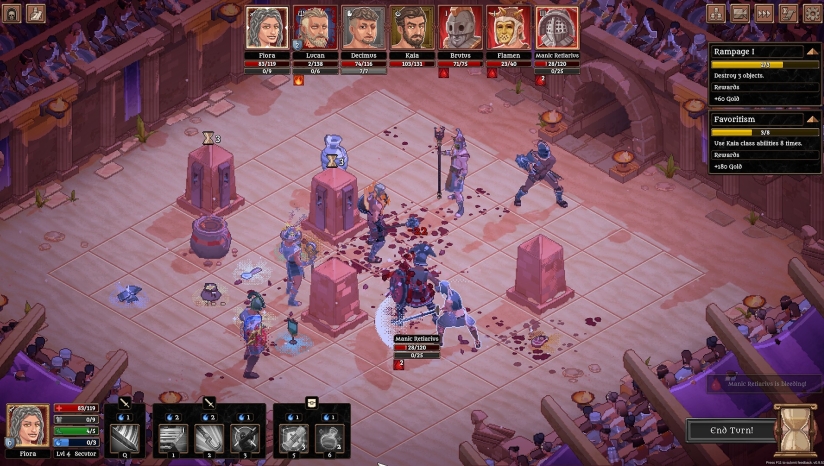 提升角斗士等级、强化其属性、习得新技能,确保战前准备充分。别忘了处理角斗士的负面状态或创伤,并为他们装备闪亮的新武器、护甲和消耗品。