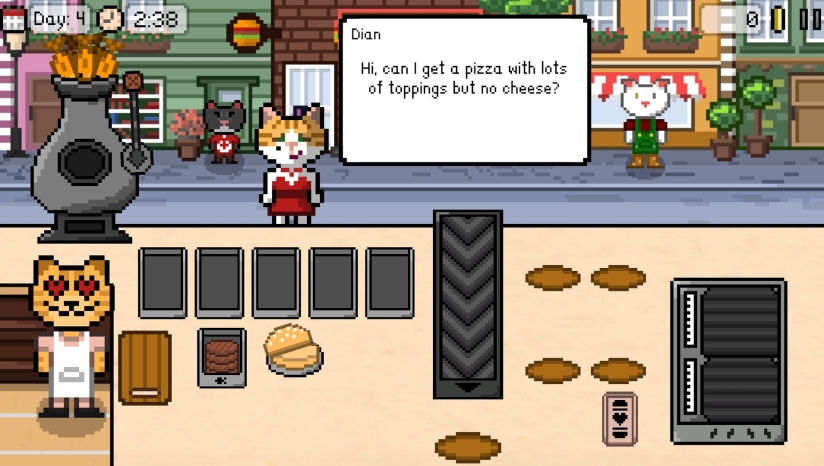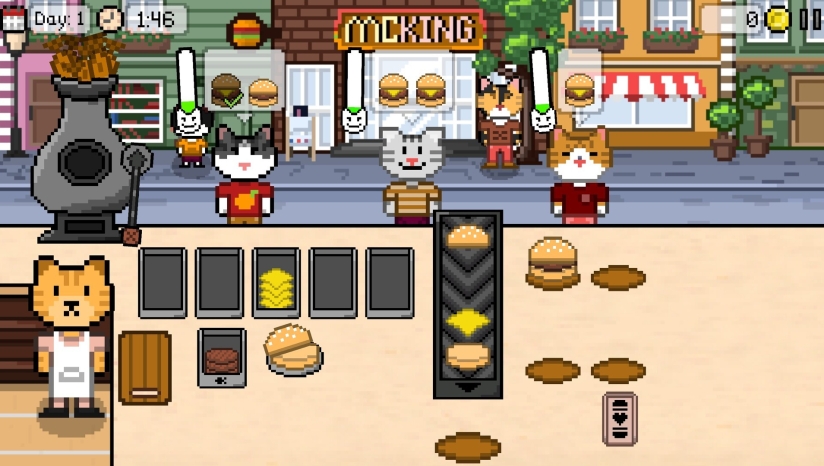 2、在可爱的猫助手的帮助下经营自己的汉堡店。