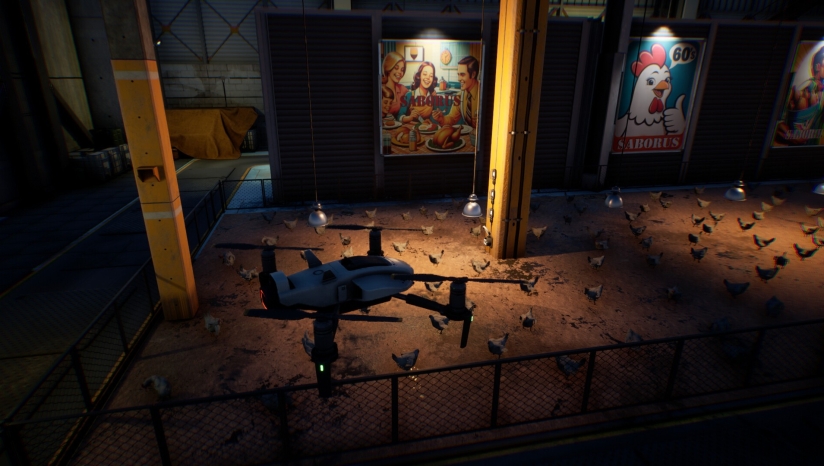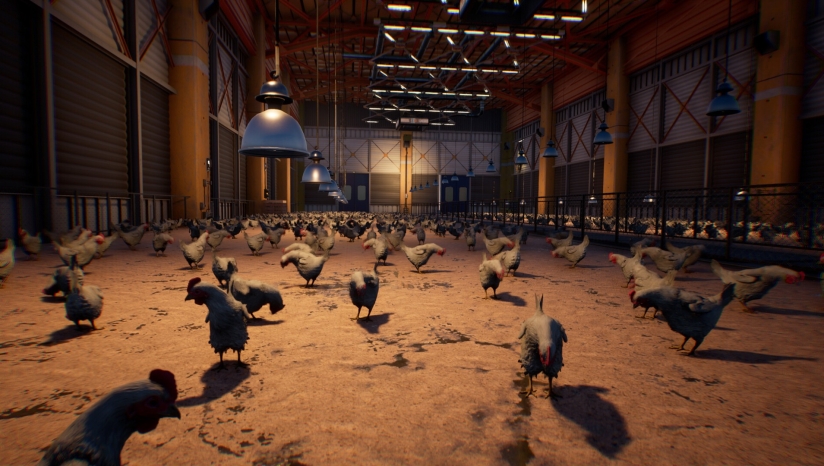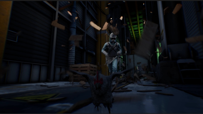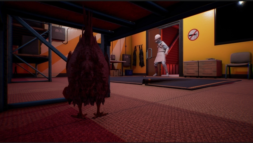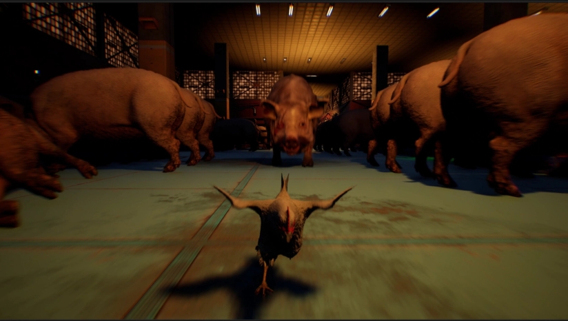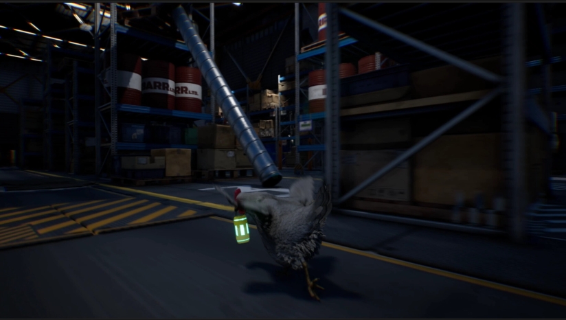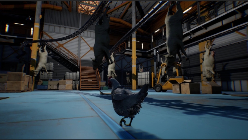 《Saborus》的核心玩法结合了动作、解谜和隐匿元素。作为一只弱小的小鸡,玩家无法直接与人类对抗,而是需要运用智慧和灵活性与环境互动来求得生机。玩家需要操控小鸡吉赛尔在工厂内快速奔跑、跳跃,躲避屠宰场工人的无情追捕。利用鸡娇小的体型,你可以躲到桌子底下或阴暗处等人类难以触及的地方。除了人类员工,游戏中还需要应对无人机甚至其他牲口的追赶,为逃生过程增加了更多不确定性。玩家必须在各种挑战中保持冷静,合理利用环境资源,才能一步步接近自由。