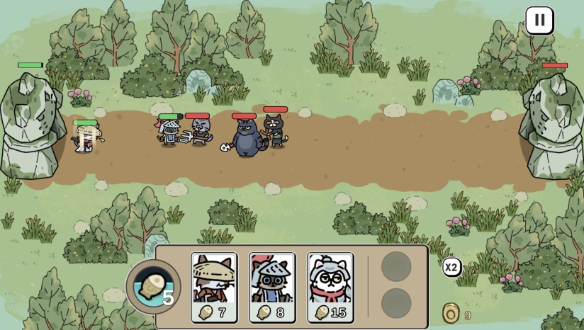在游戏中你会收集遇到的各种猫咪角色,让他们都具有独特的技能。成为你的打手后消耗小鱼干召唤出来帮助你战斗。