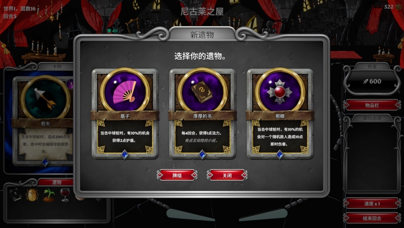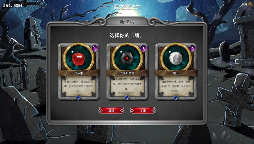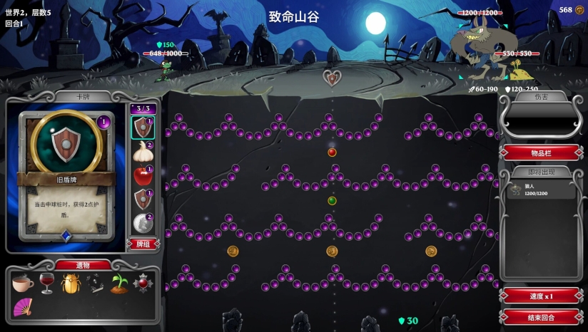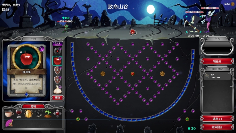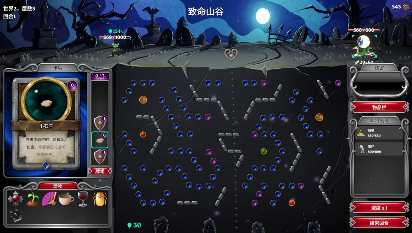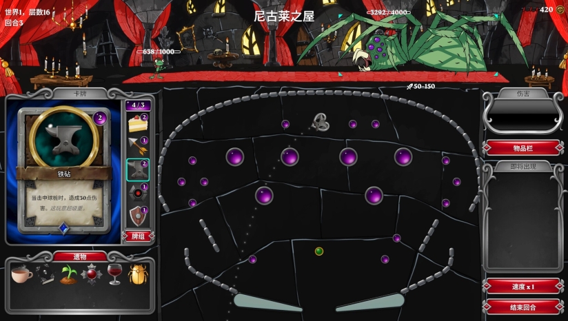 本作的核心玩法巧妙融合了经典弹珠物理碰撞与Roguelike卡牌构筑。战斗采用回合制,玩家需调整发射角度和力度,使弹珠在布满钉子的弹珠台间碰撞反弹,对敌人造成累积伤害。游戏深度融合了《杀戮尖塔》式的Roguelike卡牌构筑元素。玩家通过击败敌人、开启宝箱或随机事件,收集具有不同效果的弹珠卡牌(如分裂弹珠的“爆米花”或造成巨大伤害的“巨眼”)和提供被动增益的遗物(如穿透效果或伤害提升)。每次爬塔冒险,玩家都需在地图分支路径上做出策略选择,是挑战精英敌人获取丰厚奖励,还是选择相对安全的路线。