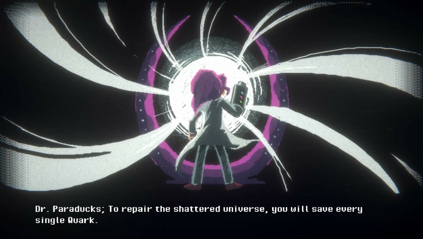 陷入悖论:聪慧的科学家帕拉达克斯博士(Dr. Paraducks)要寻找她的宠物鸭子。但由于时光机故障,她迷失在时空紊乱的阵痛之中。帕拉达克斯博士(Dr. Paraducks)被困在一个充满无限可能的世界里。尽管面前的现实无比残酷,她的理性也在不断衰退,但她仍在继续与被侵蚀的爱宠战斗。但谁知道什么才是真实的呢?除了战斗之外,她别无选择。以最快的速度完成一个个难以克服的考验,获得威力惊人的强化道具,拯救所有鸭子,抓住现实断裂的丝线。