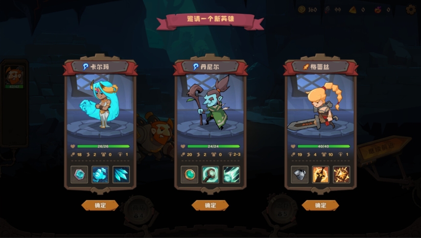 本作彻底革新了前作的卡牌构筑玩法,转向更具深度与空间策略的战棋式Roguelite体验。玩家将操控一支由三名英雄组成的小队,在俯视棋盘格上展开回合制战斗。游戏核心是三人小队策略体系。每位角色拥有独特的职业、技能树和战场定位,玩家需要灵活搭配近战冲锋、远程狙杀与辅助控场等不同职业,通过站位、技能连携与地形利用创造丰富多变的战术。Roguelite元素体现在每次冒险地图、事件与敌人配置均为随机生成。玩家需在随机遭遇中做出抉择,这些抉择将直接影响战局走向。游戏还包含“火种”成长系统,玩家可以通过战斗胜利获得的火种强化,塑造专属构筑与独特战斗风格。