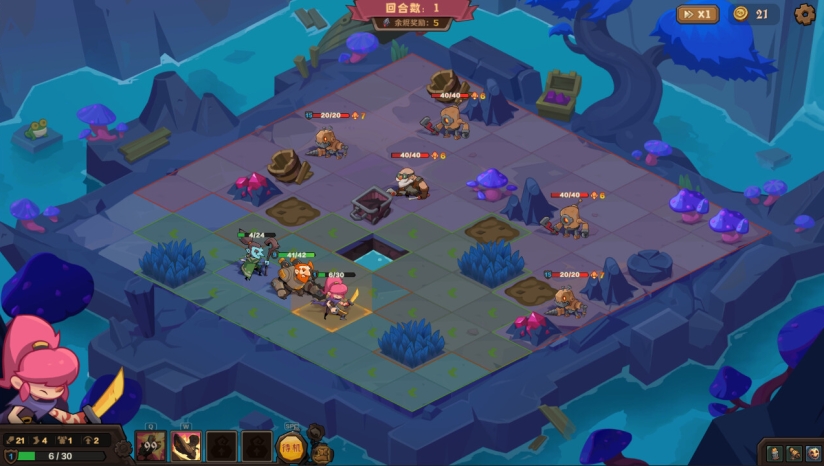 战棋与Roguelite的融合是本作最大特色。棋盘式地图与程序生成的关卡相结合,每一步都充满策略考量。地形不仅是障碍物,更可能触发特殊战术效果,让位移决策至关重要。游戏提供了高度自由的构筑系统。包含12类英雄专属遗物、9种颠覆战局的装备与7种“燃烧的火种”,允许玩家构建位移暴击流、反击反伤流、毒伤扩散流等多种战术流派。动态战场评估要求玩家每回合进行优先级博弈。