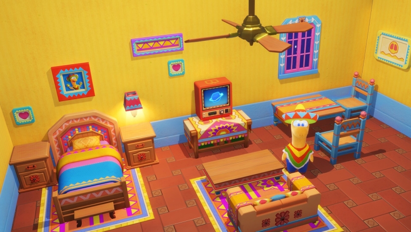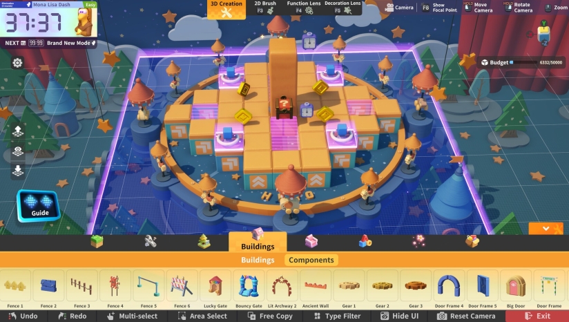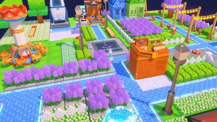 游戏玩法主要分为“模拟经营”和“迷你派对”两大核心部分,形成资源循环的体验闭环。在模拟经营方面,玩家可以自由设计六面立方星球的每一寸土地:开垦土壤种植奇异作物、经营鱼塘垂钓、深入挖掘地心矿石、建造各种游乐设施。星球建设获得的银币用于扩大发展,而居民管理则是重要环节,玩家需要为居民建设住宅,与他们互动了解故事,他们会开设商店接待宇宙游客。派对玩法则提供超过120款多人迷你游戏,每20分钟刷新一轮32人同屏竞技。游戏分为竞速、跳跃、解谜等多种类型,支持个人或组队参与,通过派对获胜可以分得金币,反哺星球建设。