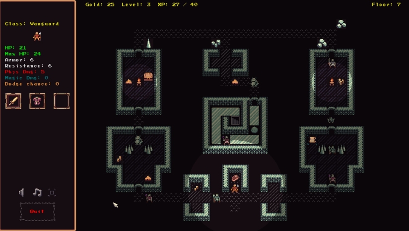 在这个精简、快速的Roguelite游戏中,穿越4像素艺术生物群落的20个随机楼层。明智地规划你的道路,做出艰难的选择,并寻求神秘陌生人的帮助,他们为了自己的目的在地牢里游荡。有些跑步会以失败告终,但总会有更多的英雄来代替倒下的人。