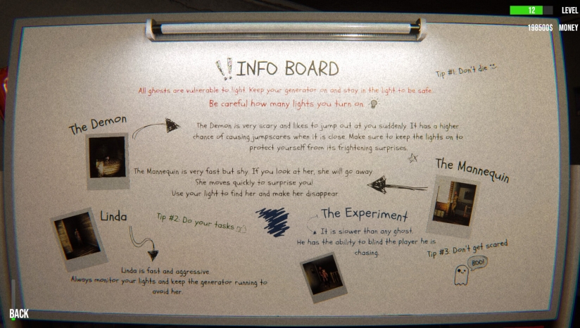 游戏采用黑暗压抑的视觉风格,通过精心设计的光影效果和环境细节,成功营造出令人不安的恐怖氛围。幽灵鬼屋的环境设计充满细节,从破旧的家具到突然出现的灵异现象,都增强了玩家的沉浸感。虽然画面偏向写实风格,但巧妙运用了心理恐怖元素,不一定依赖大量的血腥画面,而是通过声音效果、环境变化和突然的惊吓来营造紧张感。游戏界面简洁直观,让玩家能够专注于清洁任务和生存挑战,而不被复杂的UI干扰。