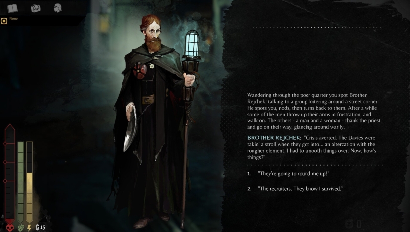 疏浚港正在失控。黑帮统治着贫民窟,腐败压倒法律,每天都有战争死难者的尸体被焚烧作为燃料。你是一名前士兵,被误认为已经死亡,并被运回疏浚港进行处理。在一次险胜之后,你发现自己独自一人在城市的深处,只有两件事:你的生活和理智。保持两者都将是一个挑战。