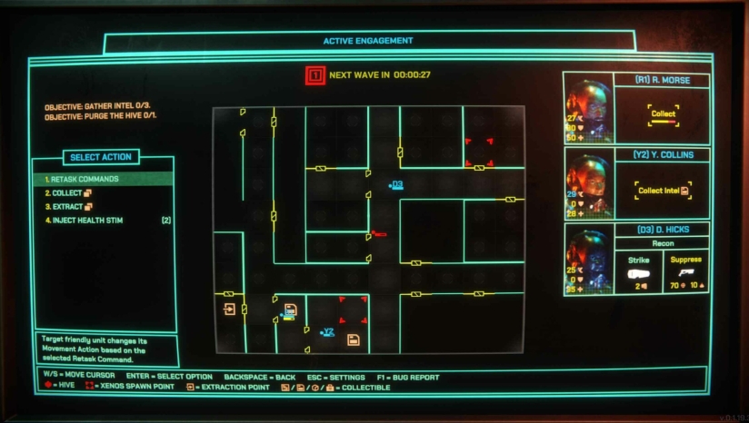 与经典的俯视战场视角不同,你在一个被屏幕和数据馈送环绕的远程指挥中心开展行动。你可以从指令列表中向部队下达命令,但直接影响战场的能力有限。Xenopurge 更侧重于预判和规划,而不是反应和操控。