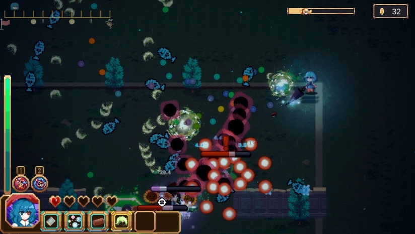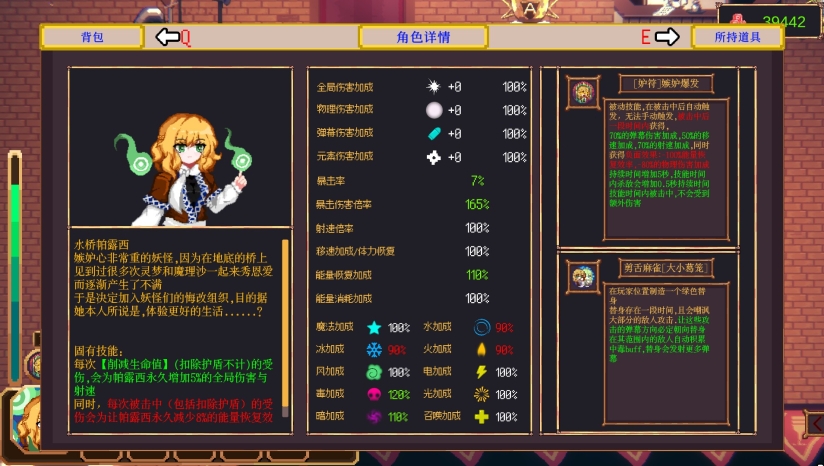 游戏提供了多位可选角色,每个角色都有独特的战斗机制。例如,被遗忘的唐伞妖怪多多良小伞拥有最高的初始数值和生存能力,近战流派强度很高;而嫉妒缠身的桥姬妖怪水桥帕露西一旦被击中就会让她的嫉妒心大爆发,战斗力会显着提升。弹幕系统是游戏的一大亮点。每一种弹幕都有其独特的作用,可以作为装备安装在武器上,玩家可以最华丽的方式倾泻火力。开发团队承诺未来会加入更多弹幕类型。“酒”是游戏的另一个核心系统。游戏中有着各式各样的酒品,会为玩家提供多种被动效果。在不同的情况下,搭配合适的酒类、角色被动和弹幕是成为强者的关键。这种“假酒”和“弹幕”的组合,带来了丰富的策略深度和爽快的游戏体验。