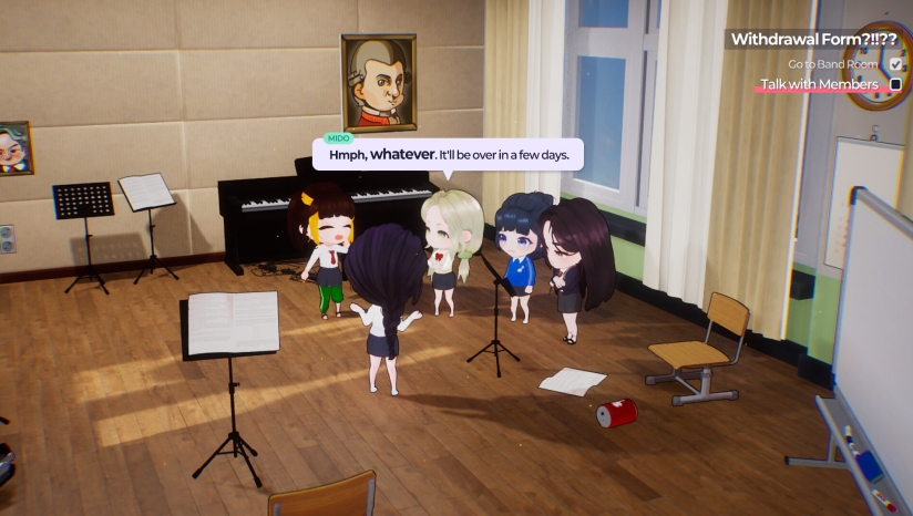 在画面风格上,《DODORI》注重通过可爱的角色设计和沉浸式的场景来增强玩家的体验。虽然搜索结果未明确提及具体的水彩或手绘风格,但游戏旨在通过视觉表现增强叙事氛围,使玩家能更好地沉浸在早云女子高中乐队的故事之中。