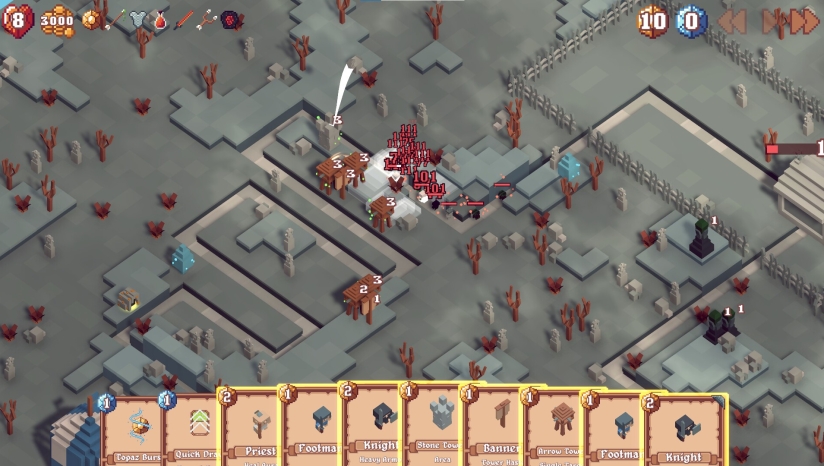 单位和塔楼仅有一种资源——使用时请三思。不要让敌人突破你的防线,并建立足够强大的进攻力量来突破他们的防线。