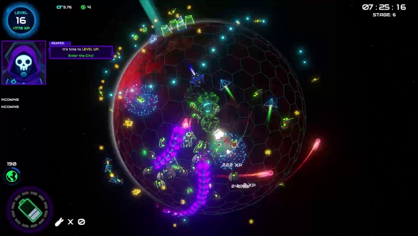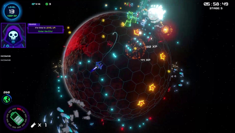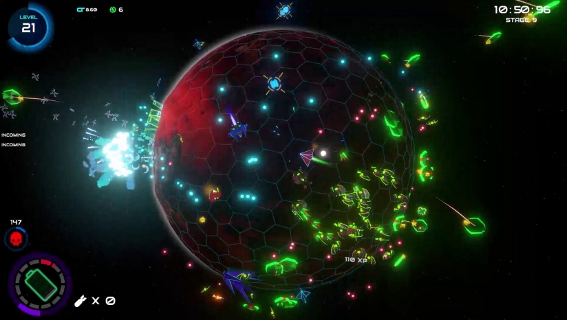 在《Zaxoid》中面对外星入侵,在这款roguelite双摇杆射击游戏中保卫你的星球。升级你的飞船和城市,每次游戏都有独特的体验。