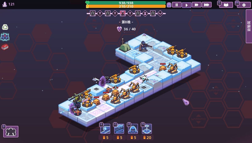 游戏的核心玩法融合了传统塔防与策略Rogue元素。玩家需要主动勘探未知地域来扩展地图,不同防御塔可受益于不同地形,因此建造位置的抉择至关重要。通过军备市场购置防御塔升级项,不仅能提升性能,还可附加全新效果,每次远征都是一次新战术组合的探索。玩家还需在游戏中拾取强力外星神器,通过精妙组合让防御体系产生质的飞跃。游戏提供了多位指挥官供玩家选择,每位都配备三座专属初始防御塔、独特技能与被动天赋,需要玩家根据战况灵活选用。成功坚守25夜后,将解锁无尽模式,为玩家提供终极挑战。