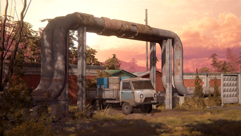 它采用了一种贴近现实的视觉风格,旨在还原后苏联时期乡村的自然风光与建筑特色。游戏场景包括广阔的田野、蜿蜒的乡村小路和各种自然景观,通过细腻的环境设计营造出一种宁静而略带怀旧的氛围。