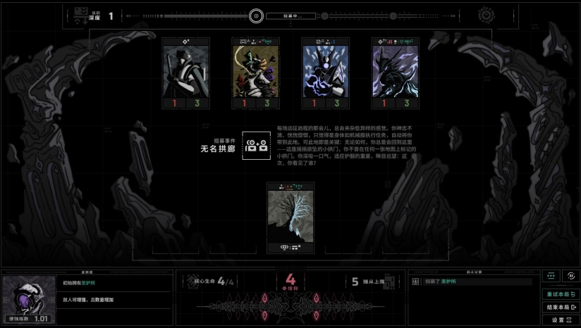 简中《无境空界》是由Ardent Fields开发、Alibi Games发行的Roguelike自走棋卡牌游戏。这款由三人团队耗时四年打磨的作品,最初源于纽约大学Game Jam的创意。游戏融合科幻与克苏鲁风格的黑暗奇幻世界观,玩家将踏入瑰异的衰败之地,招募随从卡牌编排队伍,在狩猎战斗、随机事件中推进,最终迎战巨龙Boss。每局约40分钟,圣骸匣系统随机改变游戏机制,提升可玩性。其暗黑诡谲的氛围搭配凌厉简洁的UI设计,舍弃分支选项的街机式流畅体验,让玩家沉浸式揭开失落王国的幽暗往昔。