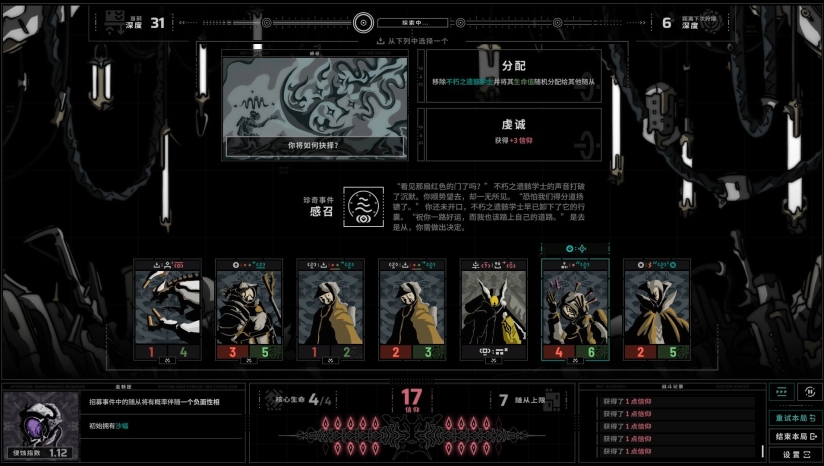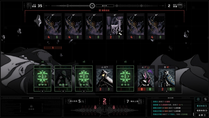 《无境空界》最显着的特色在于其高自由度的策略组合。游戏中没有固定的最优解,超百种随从与奇物的搭配产生化学反应,鼓励玩家尝试非主流套路,甚至开发出专属打法。游戏更注重局内构筑而非局外运营,制作团队受到《小丑牌》的启发,追求更纯粹的“打牌”乐趣。游戏还深度整合了肉鸽要素,除了传统Roguelike的随机地图外,还引入了“遗物系统”——某些强力道具仅在特定条件下出现,且可能携带负面副作用,玩家需在短期收益与长期规划间做出取舍,这种高风险高回报机制大幅提升策略张力。