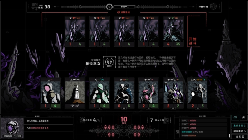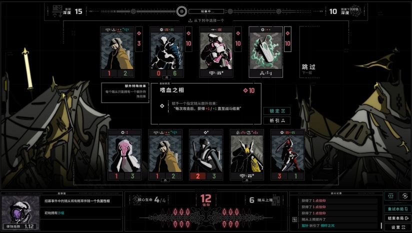 游戏核心玩法结合了自走棋的自动化战斗与Roguelike的随机生成要素。玩家可以招募超过100种拥有独特技能的随从卡牌,通过拖拽操作编排队伍阵型,利用职业克制关系和属性联动构建多元流派。战斗采用自动推进模式,玩家无需手动操作,但需实时观察战场动态,通过调整站位影响集火优先级,或在关键时刻使用奇物道具扭转局势。游戏地图由多个节点组成,包含战斗、商店、陷阱、神秘NPC等随机事件,玩家需权衡风险与收益做出选择。完成单局冒险后,可解锁新随从、奇物及天赋树,形成“越挫越强”的正向循环。特别值得一提的是“圣骸匣模式”,这一系统会随机抽取词条来改变游戏固有机制,提供无限层数的挑战,极大增强了游戏的重玩价值。