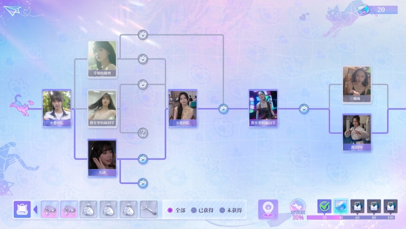 在《恋爱吗?我家猫会后空翻》这款恋爱向沉浸式互动影视游戏中,玩家将扮演一名普通的大三学生阿杰。原本平淡的校园生活因一场意外而发生转变——他意外觉醒了“超能力恋爱系统”,并因此获得六位性格、背景各异的魅力女性的倾慕。这六位女性角色包括青春洋溢的学妹陆小雨、叛逆的日本富家小姐铃木玲、温柔似水的校医林文溪、风情万种的女记者沈羽霏、飒爽全能的战术教官顾盼盼以及青梅竹马的影坛新星夏晚星。她们并非单薄的恋爱符号,而是拥有各自坚持与追求的真实人物,共同构筑了一个围绕校园生活展开的青春群像剧。