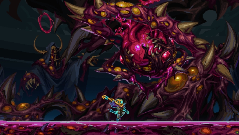 游戏采用精美的像素艺术风格,每个场景和角色都经过精心设计,带来视觉上的享受。从如画的风景到荒诞的场景,每个地方都各有其氛围和感觉,并由细节丰富、手工绘制的背景加以装饰。每个头目都有独特的个性,不仅在剧情中得以展现,而且还通过几十段独特的动画和环境中的互动予以强调。结合沉浸式的音效设计,游戏为玩家带来身临其境的视听体验。