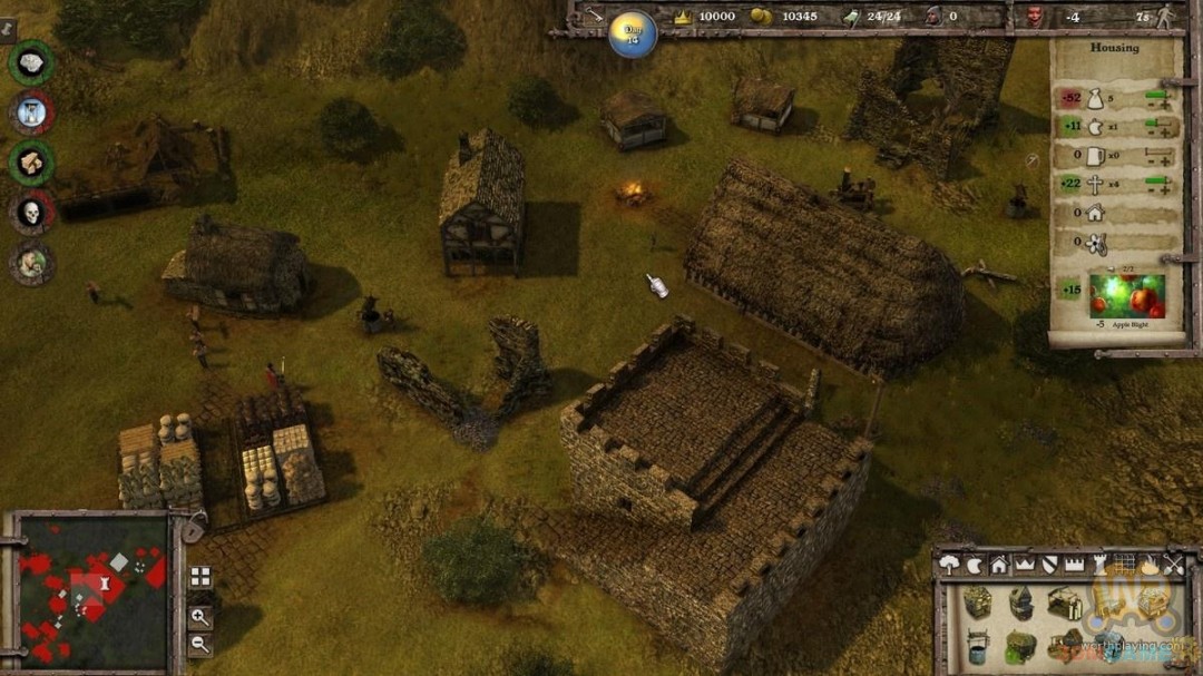 玩家可以自由控制建筑的放置位置,不再局限于网格系统,从而更精确地打造自己的王国和设定独特的战略方式。需要管理各种资源,如食物、木材、石材等,以建造房屋、农田、工坊等建筑,满足居民的需求,并发展自己的势力。