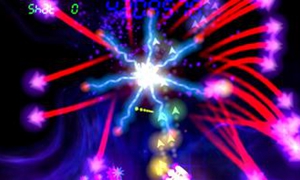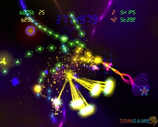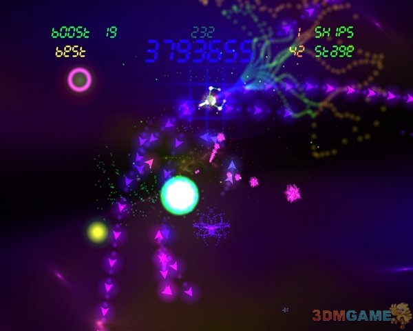 游戏采用电子风格的几何抽象画面主题,传统的宇宙背景和飞行模式被赋予了全新的视觉风格,光影的变幻和艳丽的色彩变化让人眼花缭乱,从中也可以感受到最经典的射击游戏演变的过程。