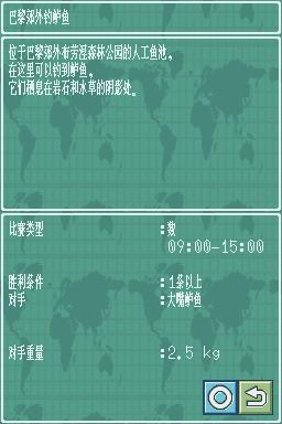 通信对战:本作对应WIFI通信,最大可以进行4人的对战。比谁可以最早的钓上特定的鱼。玩家钓上的鱼可以放入水槽中。