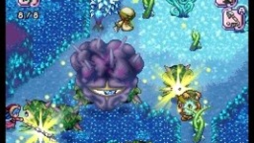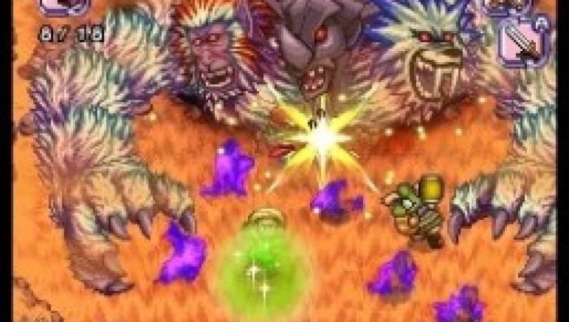0人《圣剑传说DS - 玛娜之子(Seiken Densetsu DS - Children of Mana)》本作仍采用2D画面,虽然NDS的3D机能不如PSP,但2D 机能还是不错的。游戏比起GBA版本,画面明显提升了。游戏背景更加精细,人物虽然小,但五官很清楚。游戏画面保持了系列一贯风格游戏仍然是动作RPG,玩家要操纵武器直接砍向敌人。一开始,玩家只能使用长剑。随着游戏的进程,玩家可以选择的武器也多起来,有弓箭、链锤还有锤子。每种武器的功用都不同,弓箭适合远距离攻击敌人,锤子则可以砸开罐子等等。游戏中共有火、水、木等八种属性的精灵。属性之间是相克的。不过游戏开始,玩家只能选择一种精灵开始游戏。按住B键不动,蓄力一会即可发出精灵魔法。精灵魔法分为攻击魔法和辅助魔法两种,辅助魔法可以提升玩家的能力。