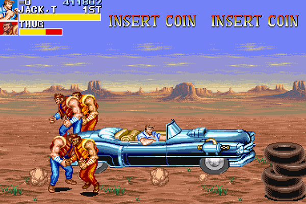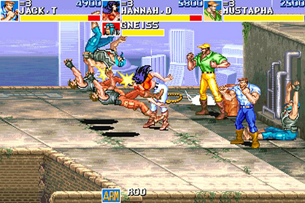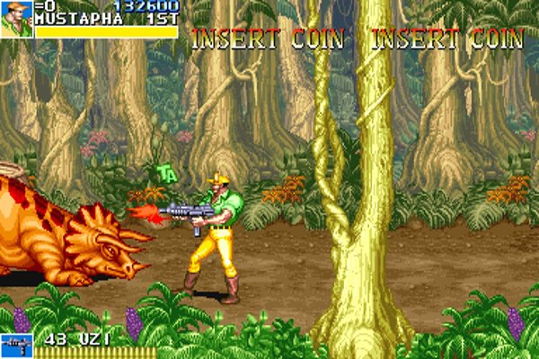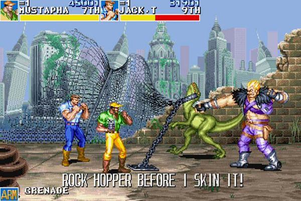 《恐龙快打》是由日本CAPCOM公司出品的一款非常经典的街机游戏。游戏改编自1993年美国CBS放送的《Xenozoic Tales》 ,靠经典商业题材--“恐龙”来卖座。