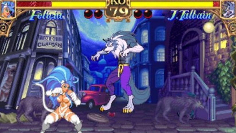 0人古今中外,来自世界各个角落的吸血鬼系、僵尸齐聚一堂,各自施展绝活,目的是为了成为“最强恶魔”。这就是CAPCOM承接《街霸2》于1994年推出,首个利用卡通色调与画风的另一款格斗热作《恶魔战士:午夜斗士(Vampire - The Night Warriors)》。