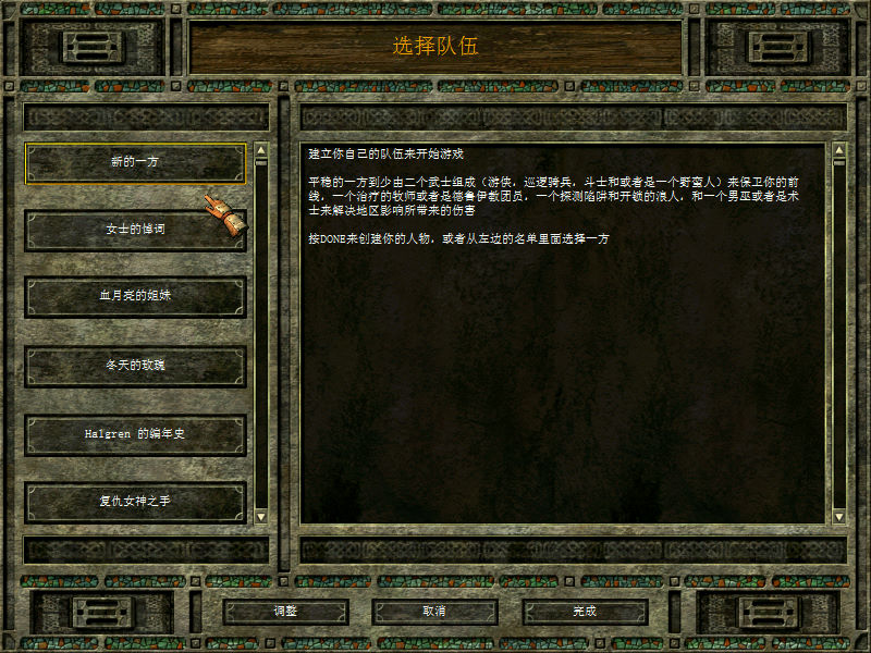 在冰风谷中文版中,一开始玩家就拥有六人满伍的冒险队,也就是说,在单人游戏模式,玩家必须创造并操纵六个人物。