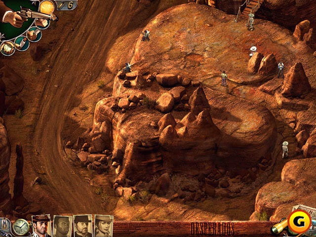 游戏采用了与《盟军敢死队》相同的"实时战术"系统,并将数十种美国西部独有的战斗方式与游戏完美的融合在一起。游戏围绕着这只由6名赏金猎人组成的"牛仔敢死队"在西部的冒险故事展开,共包含25个关卡。城市、印第安部落、西部小镇、城堡、金矿、棉田、沼泽,以及各种不同天色变化,使美丽的西部风光尽收眼底;而游戏中所涉及的各种动作、策略和互动环境更会使玩家觉得耳目一新--你的赏金猎人们不但会使用转轮枪、飞刀、扑克牌、雷管、响尾蛇、迷魂药、眩目等数十项绝技来杀敌诱敌,甚至中国女孩独有的淘气小猴也能助你完成任务。队员们更有丰富的行动方式:进入建筑物、骑马疾驰、破环装置、回收装备、匍匐、攀爬、跳跃、开锁、躲藏、潜行、摧毁障碍等等……而每个敌人各不相同的10种性格以及总数达35种以上的无辜平民和动物都使玩家犹如置身真正的西部时代之中。