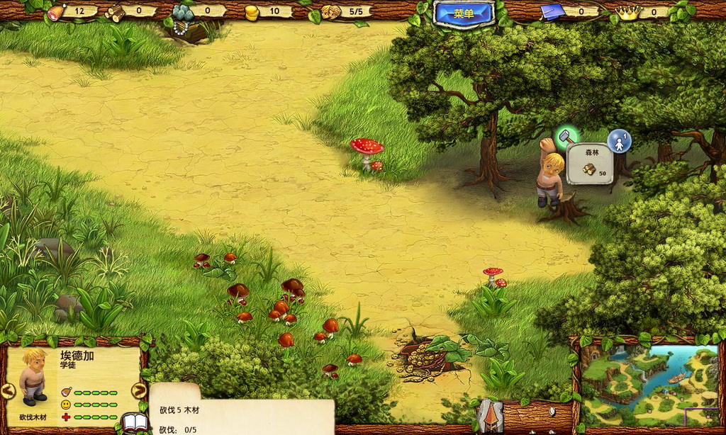 游戏采用鼠标控制,开始你可以随着操作提示来逐步熟悉各种功能,点击人物可以抓住它们拖动到任务地点去工作,房屋可以显示各种资源的收集和人物的能力,游戏中可研究的细节很多,随着游戏进行你将逐步掌握。