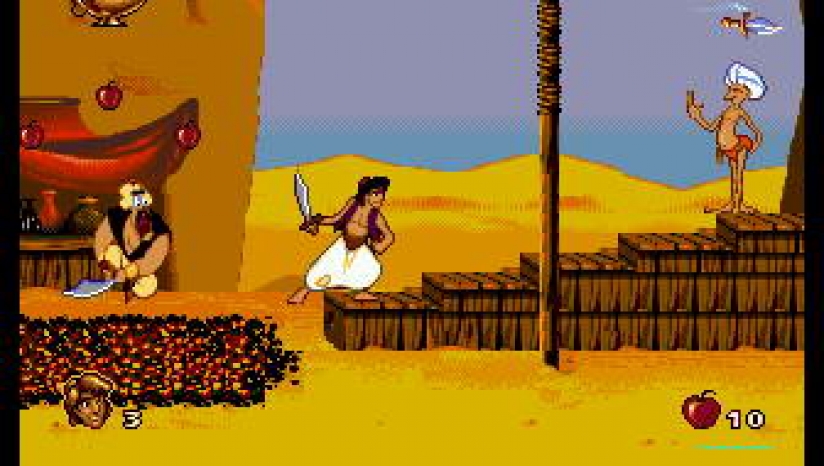 迪士尼的阿拉丁正统作品只在MD上推出过一代,看到很多朋友说玩过2代,其实这是一个山寨游戏,开发商可能是台湾的某公司。