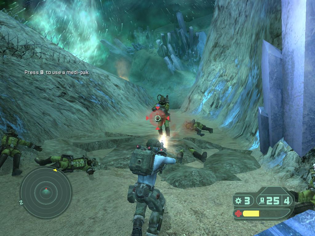 游戏的武器十分先进,远超越敌方的高级武器。Rogue的装备(枪、头盔、背包)中包含有生物芯片,在这些芯片中记录有死去战友们的特征。你可以通过这些芯片应用战友们的各种能力,Rogue虽然只有一人作战,实际上却拥有了整个战队的实力。本作除了单人模式外,还可透过网络进行4人协同作战模式,享受合作灭敌的乐趣。