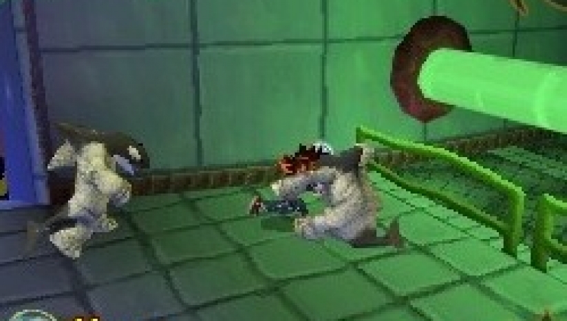 虽然用拳打和脚踢的方法足以对付身材较小的敌人,但游戏的核心设计并不在此。古惑狼在游戏中可以举起小型敌人,利用它们的不同特性去打倒大型的敌人,如此循环往复,游戏开发者把这个过程形象地比喻成 “生物链”系统。说白了其实就是,玩家可以通过扔出被打晕的小个敌人来打倒体形更大的敌人,再举起被打晕的大个敌人去打倒更大个的敌人,以此类推……