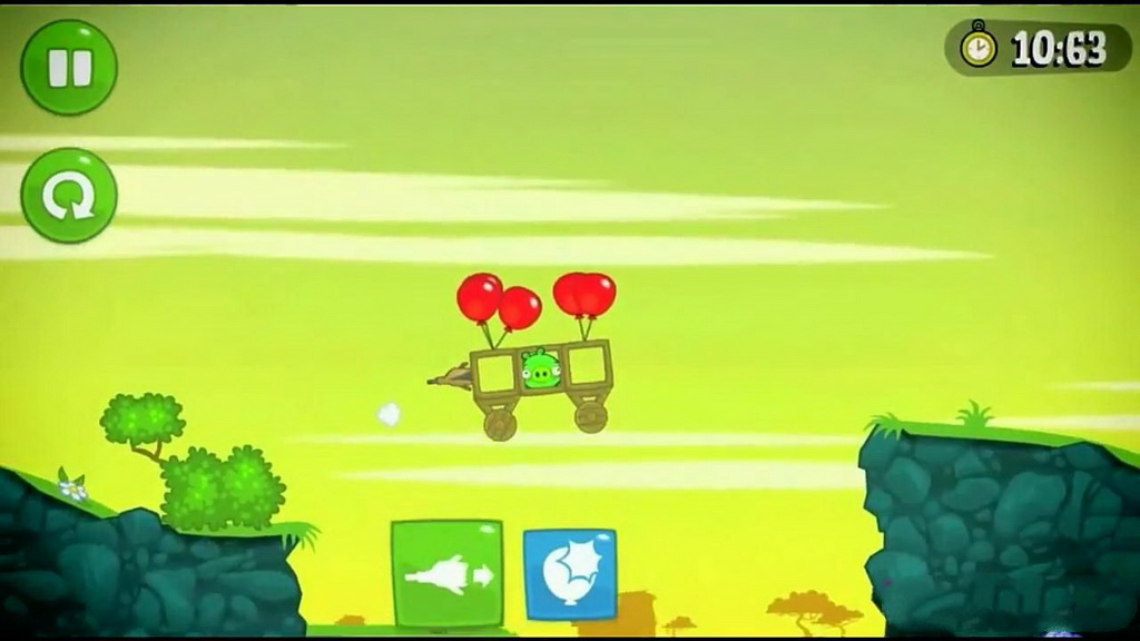 在《捣蛋猪》中,玩家要扮演可爱的小绿猪们,利用各种稀奇古怪的道具,如弹簧、气球、螺旋桨、雨伞等,建造各种各样的载具。通过飞行、爬行、滚动、旋转、撞击等方式,让小猪找到地图碎片、鸟蛋、蛋糕、钥匙等,完成关卡、沙盒的任务。游戏采用了与《愤怒的小鸟》同样的物理引擎,根据所乘坐的绿猪、猪王体积大小和玩家的设计,交通工具的移动路线也会大不相同。