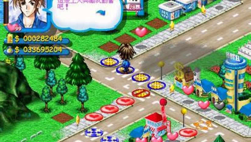 这款游戏的玩法比较类似大富翁,为了追求小葵、小纯、瞳瞳三位女孩子,主角需要以大富翁的玩法积累尽可能多的资产,同时多学习恋爱课程,才能够在竞争中取胜。需要注意的是,这款游戏中作为男主角的你只能够追求一位女孩子,当你选定之后就会对应一张地图,你需要在这张地图中与你的竞争者挑战才能够有机会获得美女的芳心。
