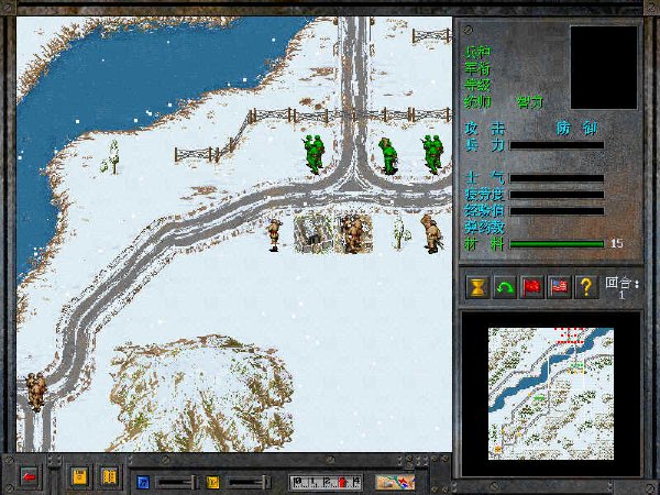 战役14:突破临津江。战术同上一关。此关无法得满分,因为敌军阵营中有4支部队在第一回合突然遁了。