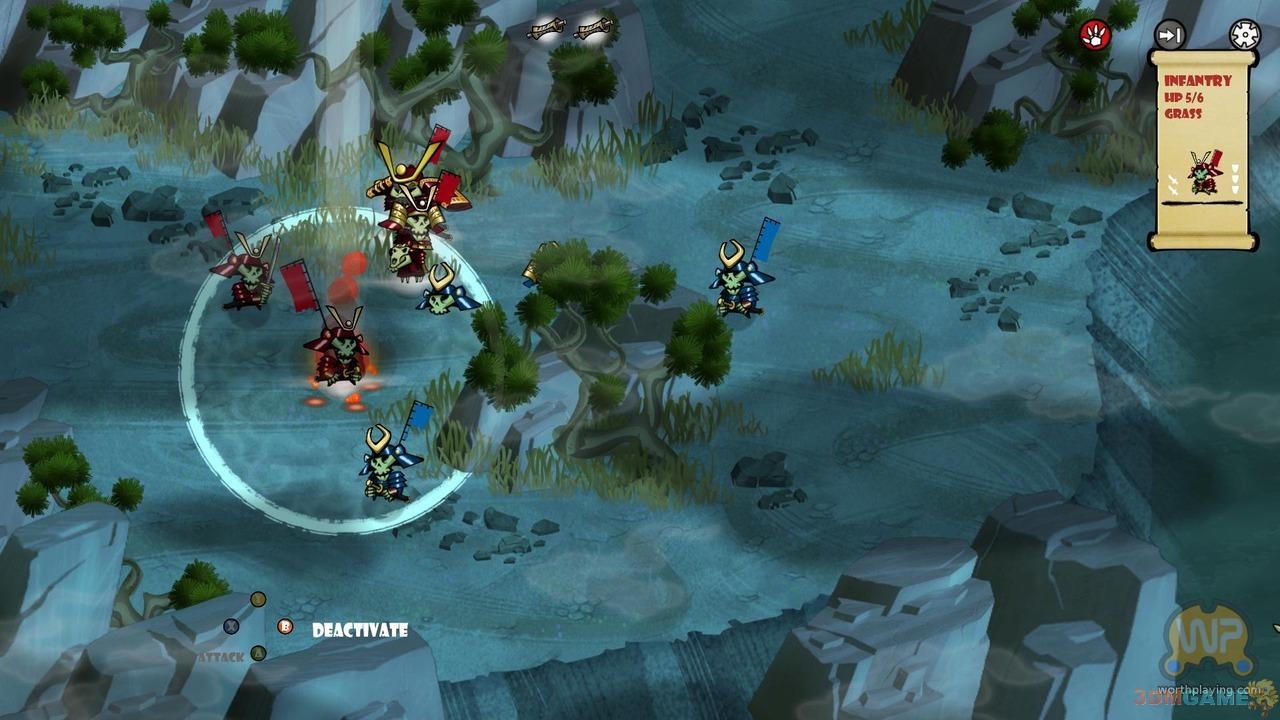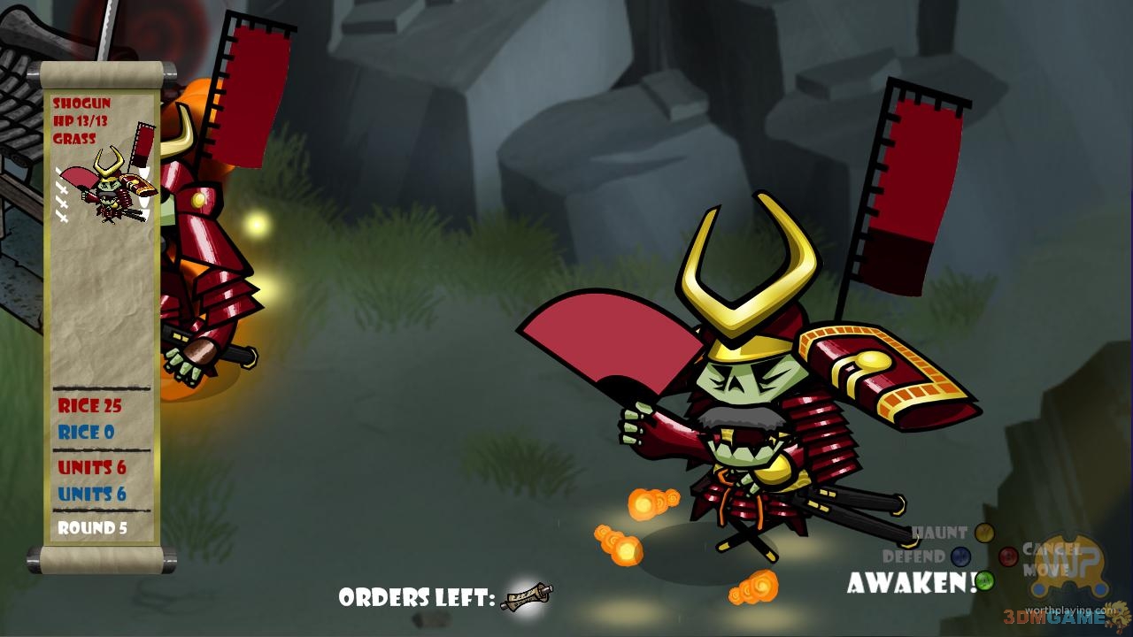 游戏风格充满着卡通风,这是一款散发着浓郁的日本武士色彩的策略游戏。游戏的设定很有意思,在你死后,你会加入到一群士气十足的幽灵武士当中,你还会遇到会魔法的动物和尚,以及长着大胡子的武士将军,你们将一同和另一个由奇怪生物组成的势力在神秘的战场上展开激烈的战斗。