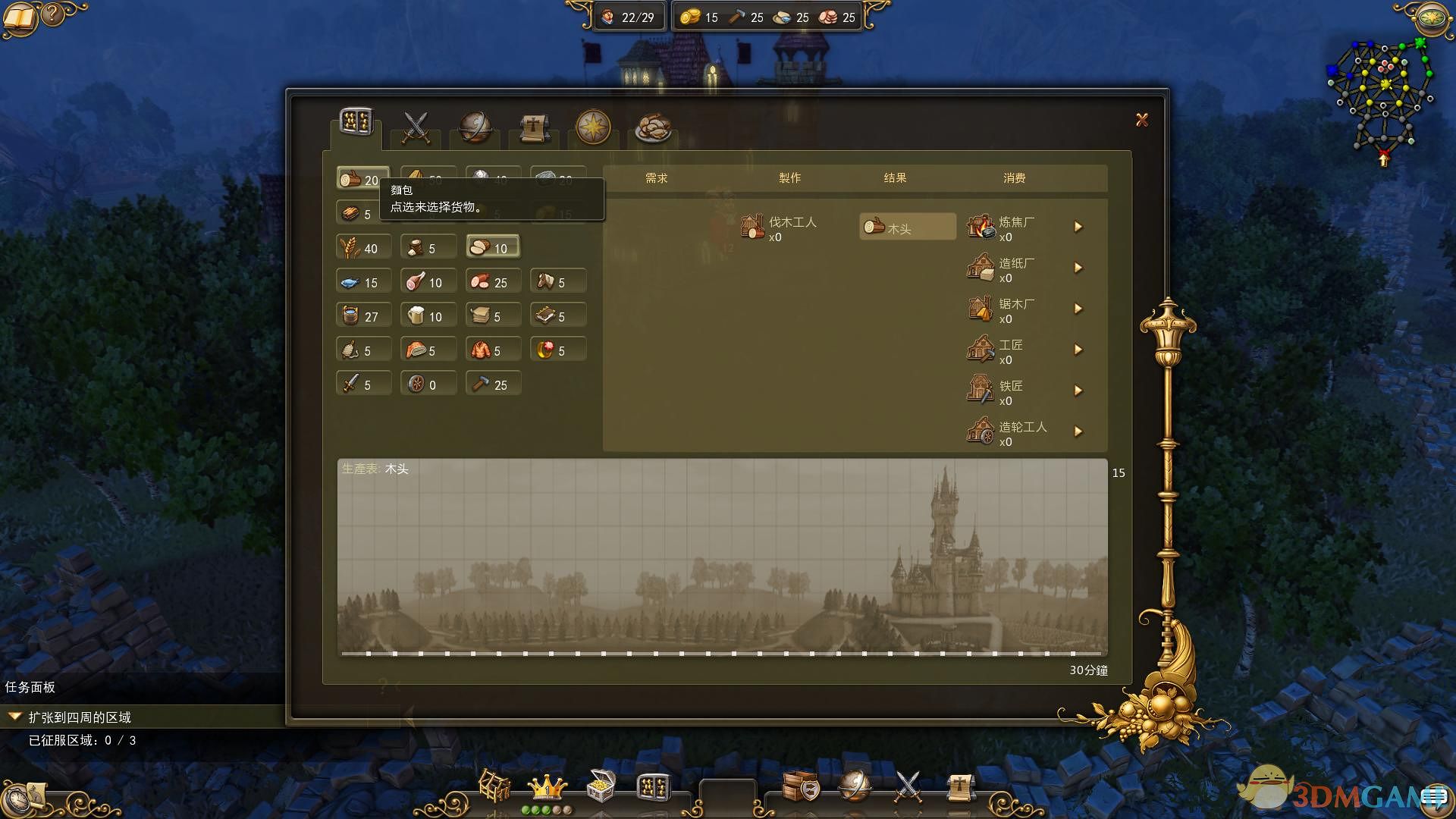 在《工人物语 7》的地图上,每位玩家都会拥有一块属于自己的领地,玩家必须要利用建设资源相对应的建筑物来进行开採,再利用资源进行加工产生出更高阶的资源。比如想如果想要製作出麵包,必须先建设农场并在四周盖起穀仓生产穀物,再将穀物拿去风车磨坊加工程麵粉,最后再拿去麵包店就大功告成了。
