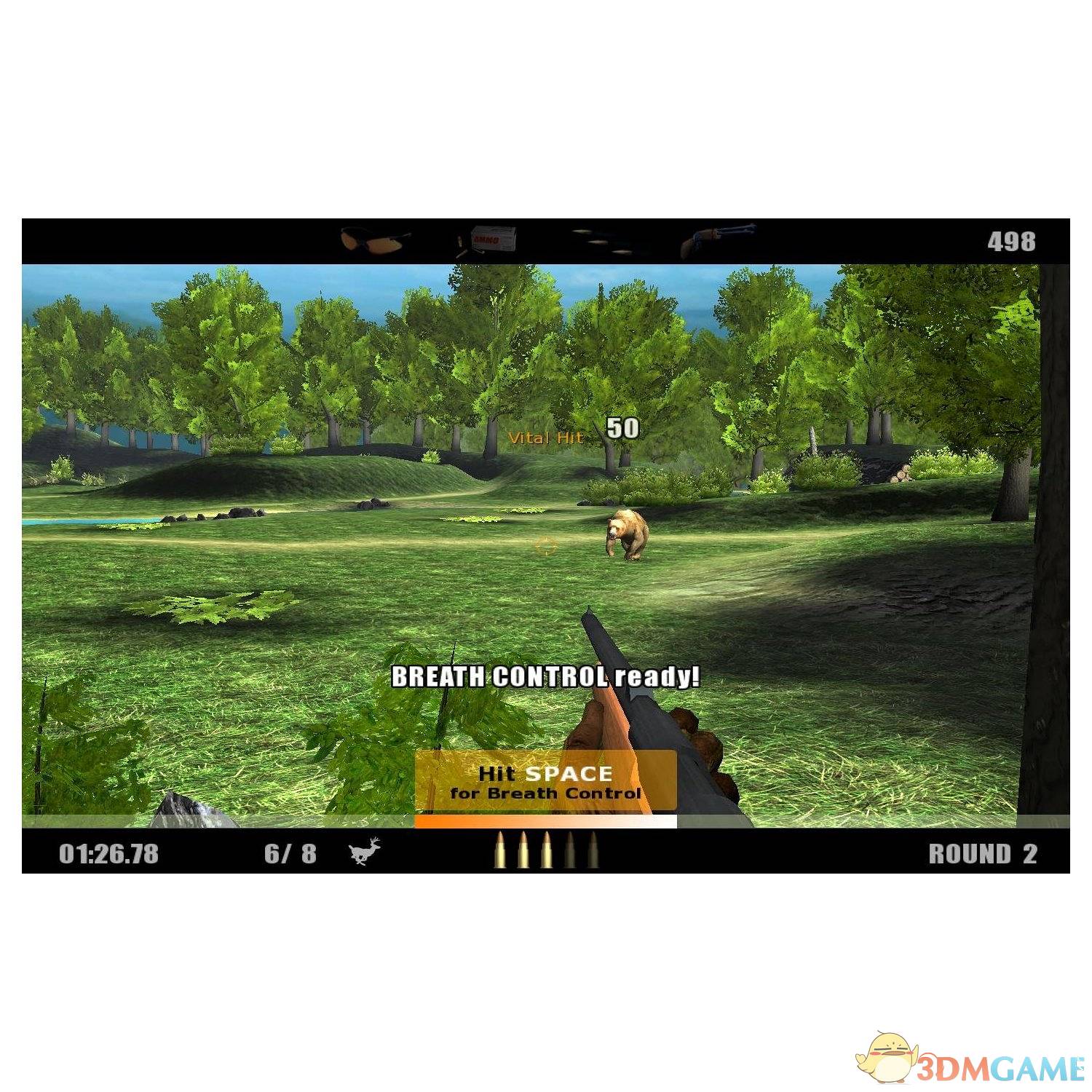 幽静茂密的森林充满了勃勃生机,你需要的是精心的掩护和耐心的等待。游戏的3D画面制作精细,各种动物栩栩如生,考虑到游戏的容量,这样的画面表现就很令人满意了。