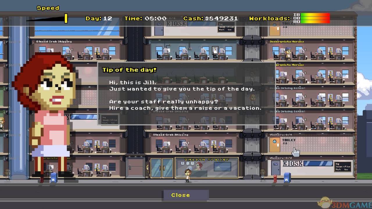 游戏中,玩家所扮演的是一名呼叫中心的CEO,通过最好的平衡员工的工作量和心情,来达到成功,成为个优秀的管理者。让你身临其境的体验当客服人员的辛苦,然后就是运用你的智慧,尽可能的将调解中心运营的合理化。