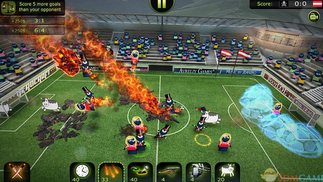 《足球联赛2013:超坑联盟》 是一款超级坑爹的足球游戏,地雷、盾牌、火星人、牛、枪,各种坑爹的东西都能用上,有兴趣的玩家不妨一试!游戏操作非常简单,只需要使用鼠标左键向对方球员释放道具即可。这里有个小技巧,当你面对门将准备射门时,你只需要使用炸弹道具将门将炸飞,这样你就可以轻轻松松射空门了,把握好这些,你将会所向披靡。