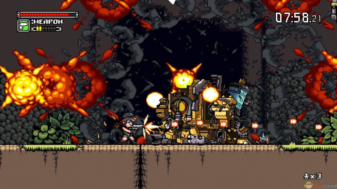游戏采用横版动作闯关模式,类似《合金弹头》。玩家在充满挑战的关卡中,通过跳跃、射击、出刀等操作与敌人激烈战斗,消灭一波又一波的敌人,突破重重障碍。