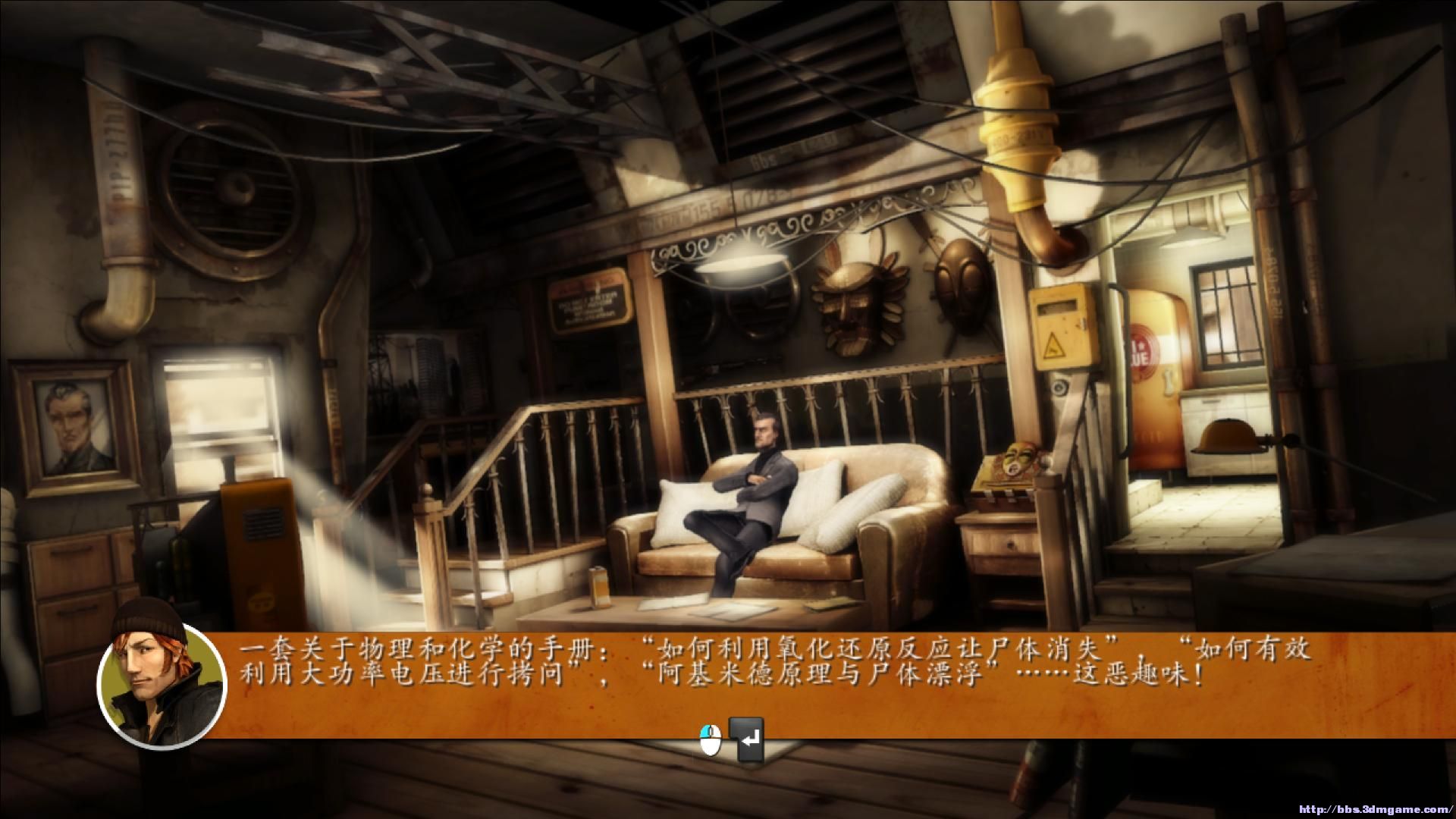 由于是主机平台移植过来,3D效果让画面更细致,破案的手法也更加多样化,所以配置要求会比一般AVG要高一点,但因为绝大多数场景都只是部分3D,所以对配置的要求也降低了不少,下面有2个平台的速度测试。游戏风格与传统的AVG不一样,没有费时间的看词找物,反而更注重的是对案件的推理和证物研究,而且加入了很多美式幽默,跟我一样喜欢这种风格的一定不能错过~游戏安装目录名字必须为全英文!