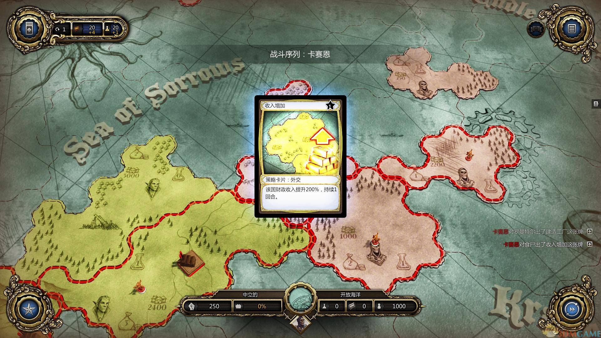 另外游戏中,玩家们还可以从各势力中雇聘顾问到自己的基地,这些顾问会随着游戏进行给予玩家们各种不同的意见;或是玩家们也可以以政治婚姻的方式迎娶各势力的年轻公主,如此一来在战斗的时候就可以得到对方派遣援护部队来支援,或是在该势力区域受到各种恩惠奖励的好处;同时本作也将会支援多人模式要素,让玩家们可以再採用桌上游戏类型的回合制战斗系统下来进行对战同乐。附带一提,另外本作还将会随着玩家们任务或交易、战斗等各种要素得到各式各样的卡片,并利用这些卡片在战斗中组成最多五张的牌组来进行战斗支援,藉此让游戏战略性变得更加有趣。