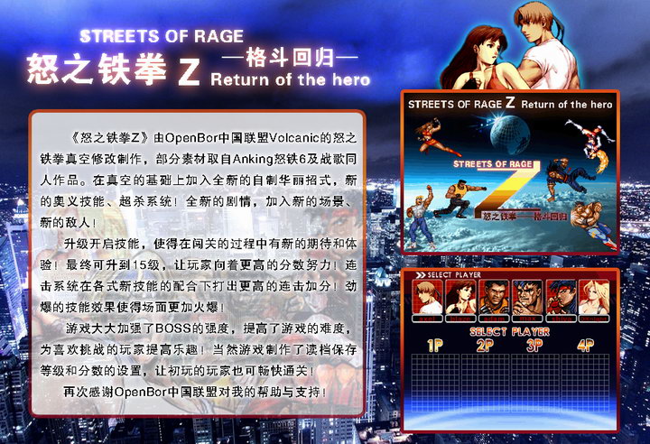 这款经典的街机游戏是非常多玩家的童年回忆,这款《怒之铁拳》的爱好者们制作的游戏中加入了更多的可选角色,同时诸多经典的boss也将登场。