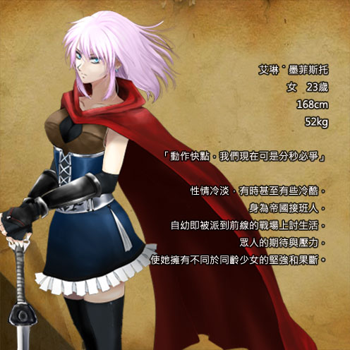 半战棋式的长篇SRPG,OOXX的革新作,本作中几乎所有图片都是自制,包括行走图、地图等素材,相信玩家在游玩时能充分感受到制作者们的革命精神。