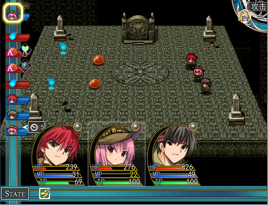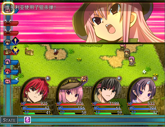 秉承前作风格,游戏的战斗系统采用了SideView+Yanfly Battle Engine的横版战斗系统,同时加入了仿轨迹风格的AT战斗。